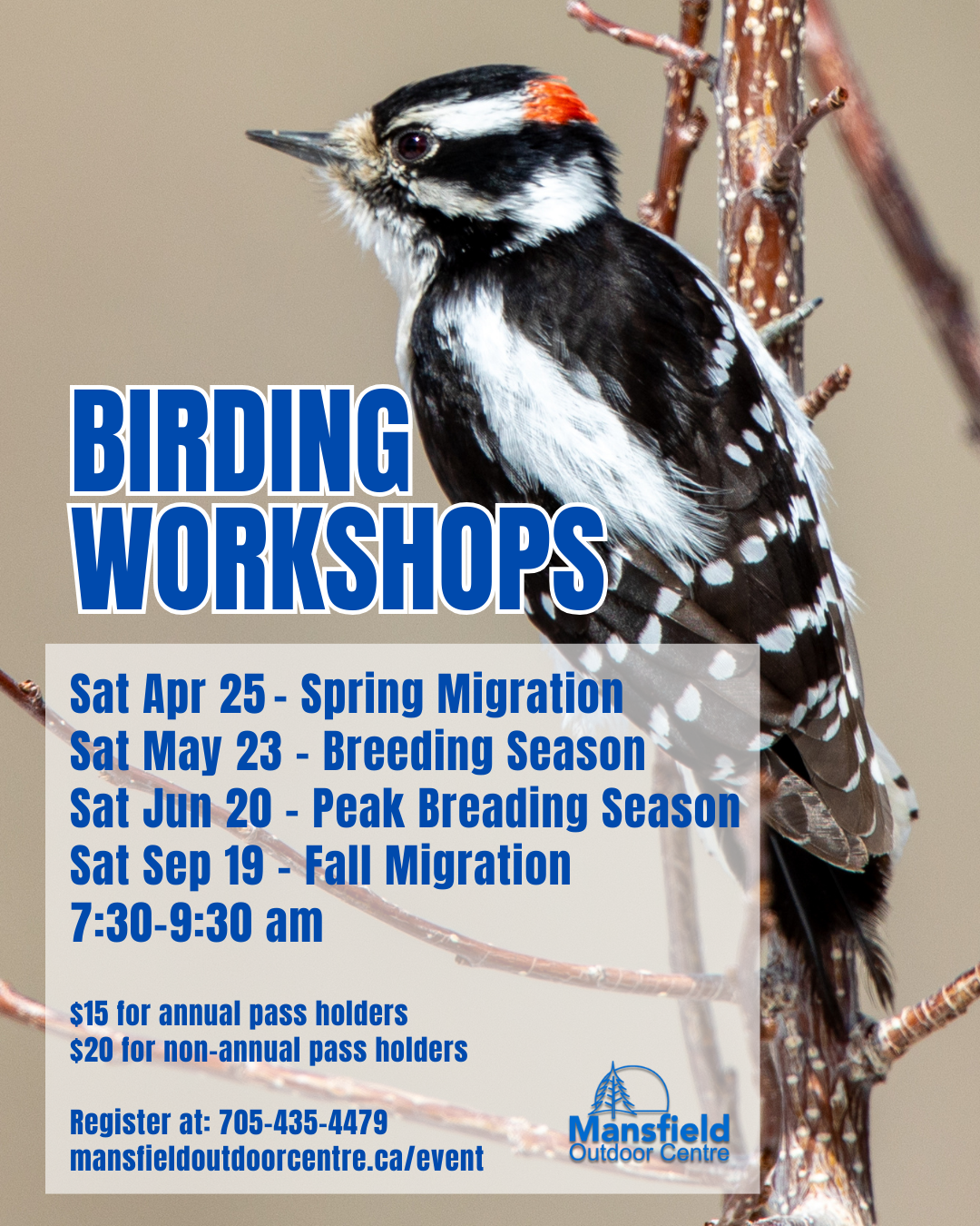Spring is in the air—and so are the birds. Join us for a guided morning birding workshop focused on spring migration, when our trails come alive with returning songbirds and seasonal visitors. This is a perfect time to sharpen your identification skills, learn migration patterns, and enjoy the excitement of spotting birds on the move. We ran two birding workshops last season with a great response, and Ryan and Christie are back by popular demand for more birding fun this year. Whether you’re brand new to birding or already hooked, this relaxed and engaging workshop is a great way to kick off the season – all experience levels welcome! We will walk up to 3kms of flat trails near the Pine River. Come dressed for the weather and/or bugs. Binoculars are highly recommended! Cost: $15 + tax per person for season pass holders $20 + tax per person for non-season pass holders (includes a day pass) Your hosts: Ryan started birding about 12 years ago and Christie started birding during her ornithology course as part of her biology degree. Ryan and Christie are volunteers for Birds Canada and the Breeding Bird Atlas of Ontario.