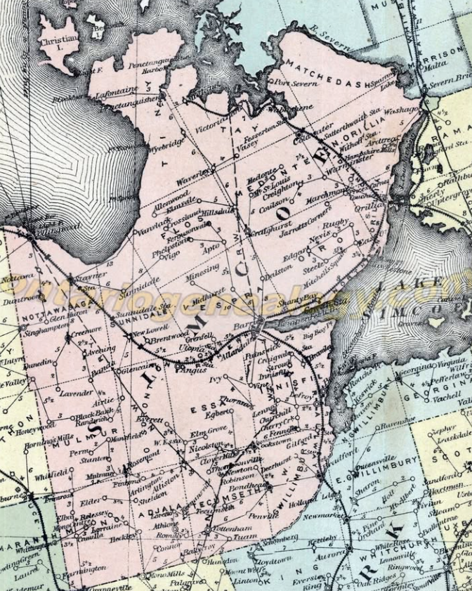 Photo: A map of Simcoe County, ~1850 Photo Credit: Ontariogeneology.com