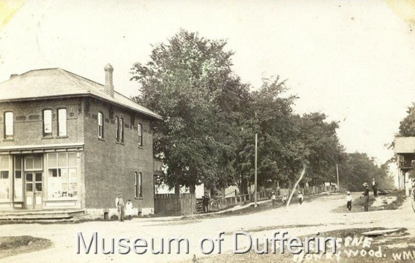 Photo: Postcard, Honeywood Street Scene, Mulmur, 1909 Photo Credit: Museum of Dufferin - MoD # P-0138 A
