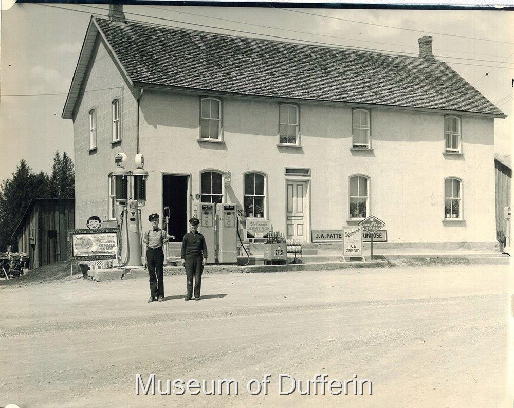 Photo: Patterson's White Rose Station ca. 1940 Primrose. John A "Jack" Patterson (1891-1956) and Mary "Alma" (Dean) Patterson (1899-1974) operated a gas, snack and variety business on the Northeast Corner, the current location of Champ Burger. The building was the former Dean's Hotel. Photo Credit: Museum of Dufferin - MoD #P-3774-006